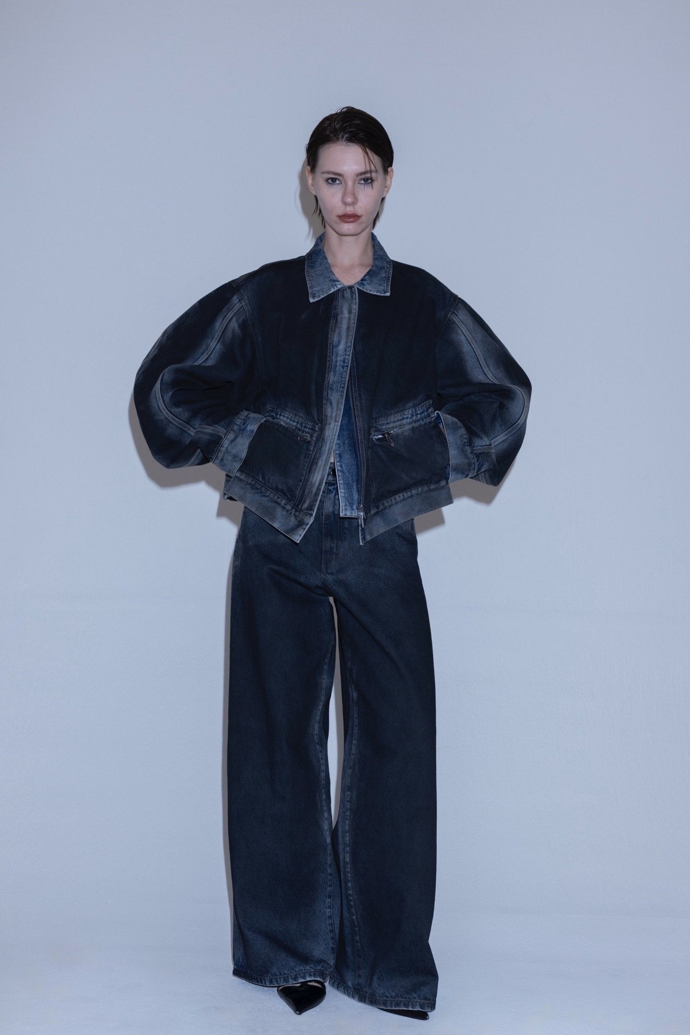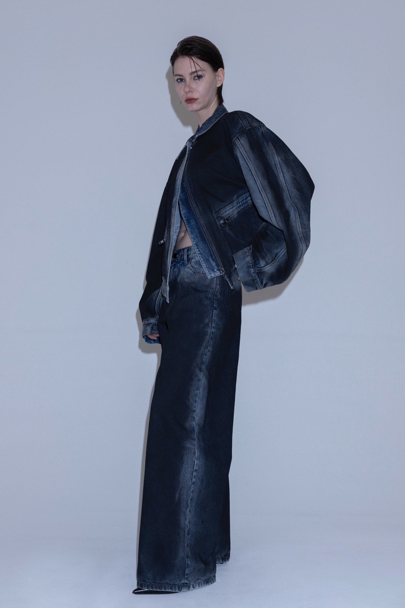 ▼ Angle denim jacket