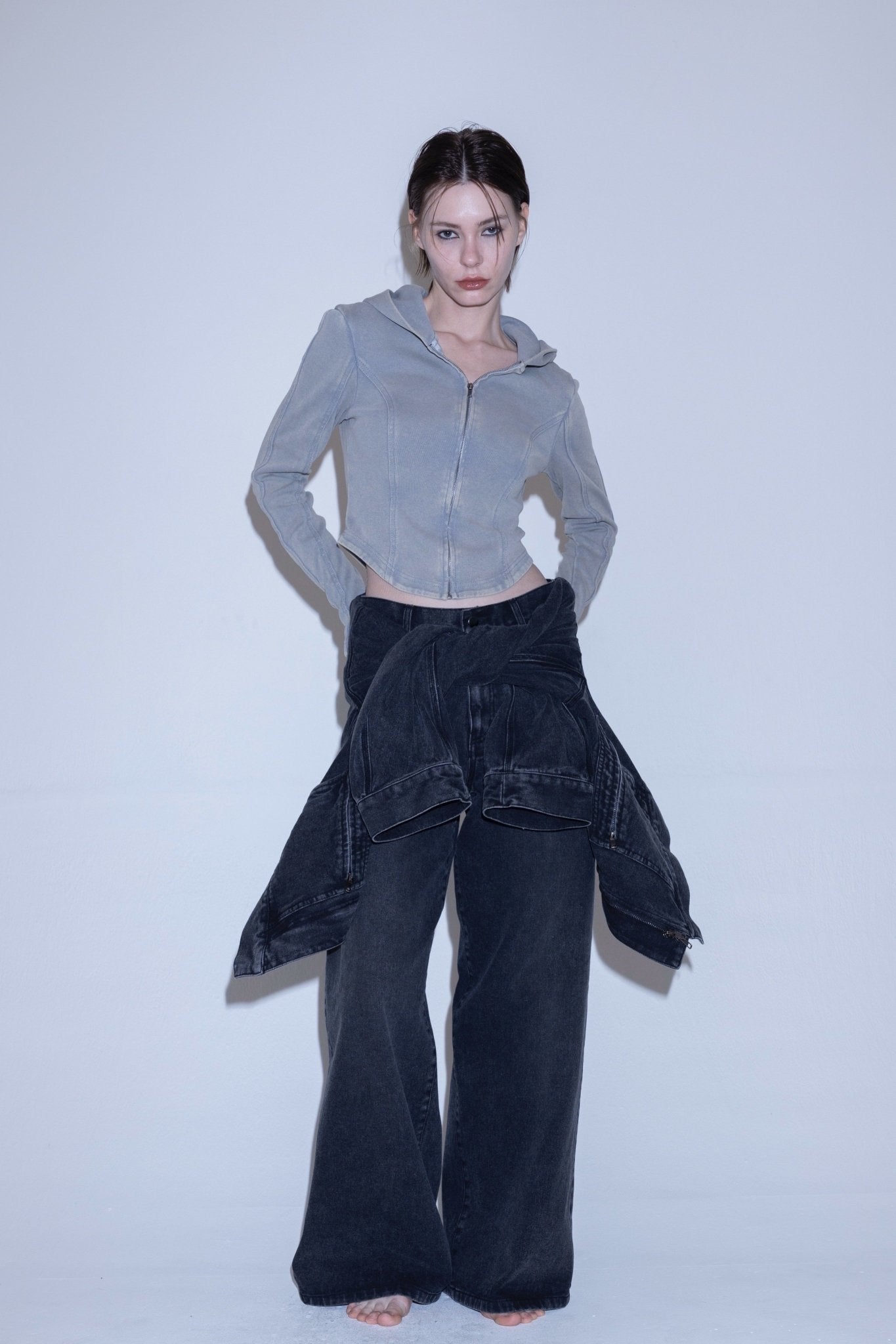 ウエスト位置をやや低く設定したローウエストデザインが、抜け感のある洗練されたバランスを演出します。