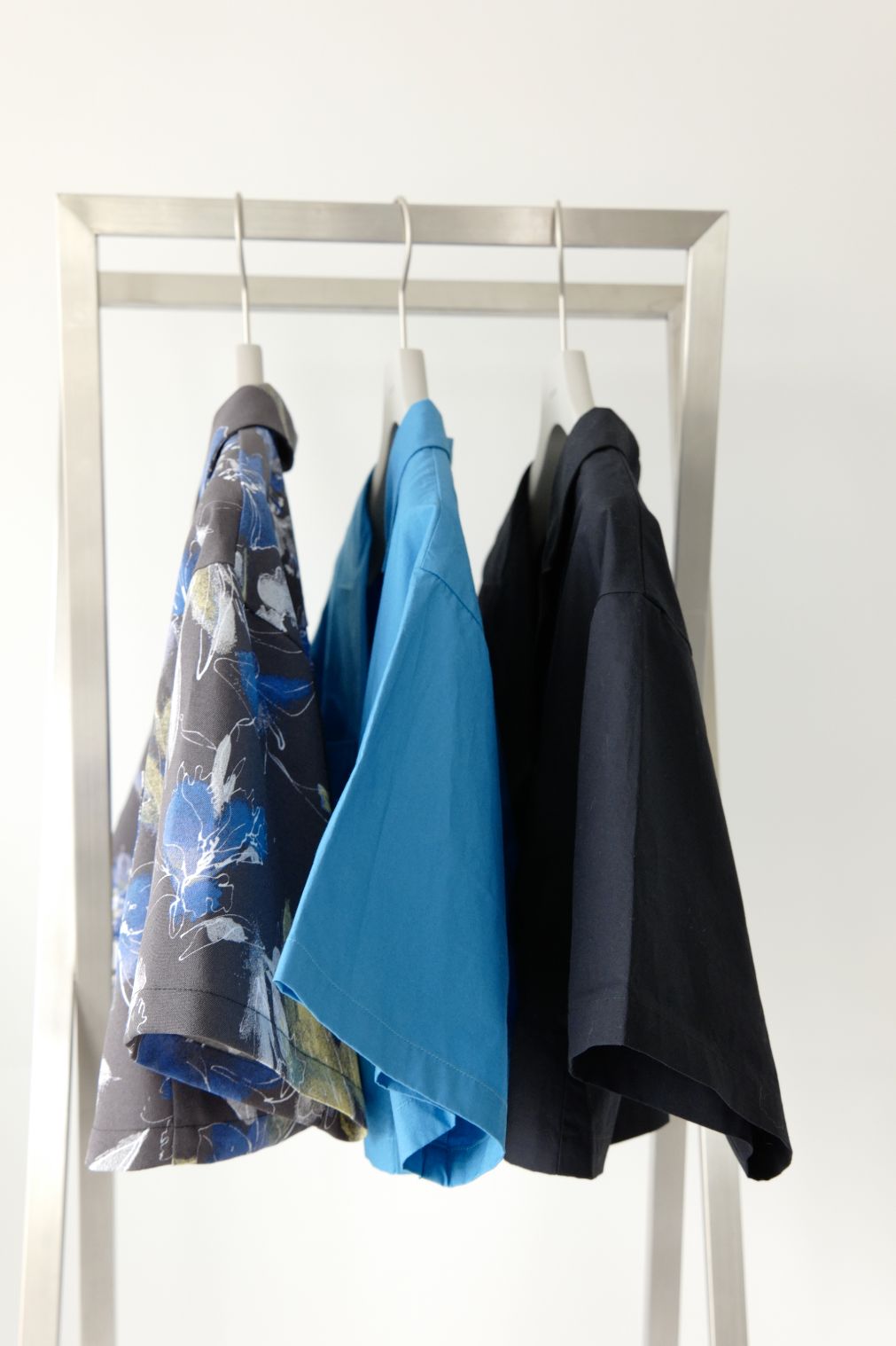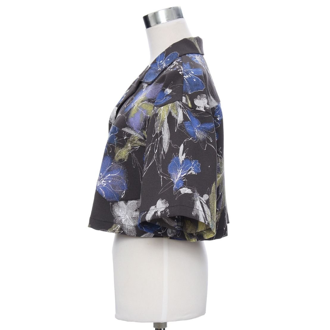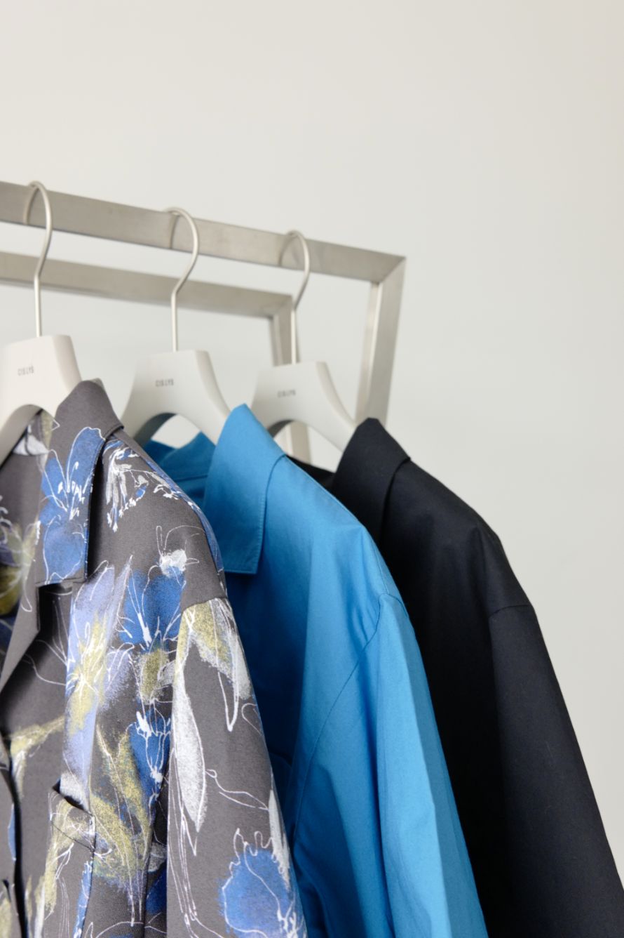 ESIÓオリジナルで作成した柄です。グラジオラスの花をイメージして描き下ろされた大胆な花柄とスプレーで色を付けた様な繊細さがコントラストのある柄に仕上がりました。シャツはtypewritre box shirtと同型になります。