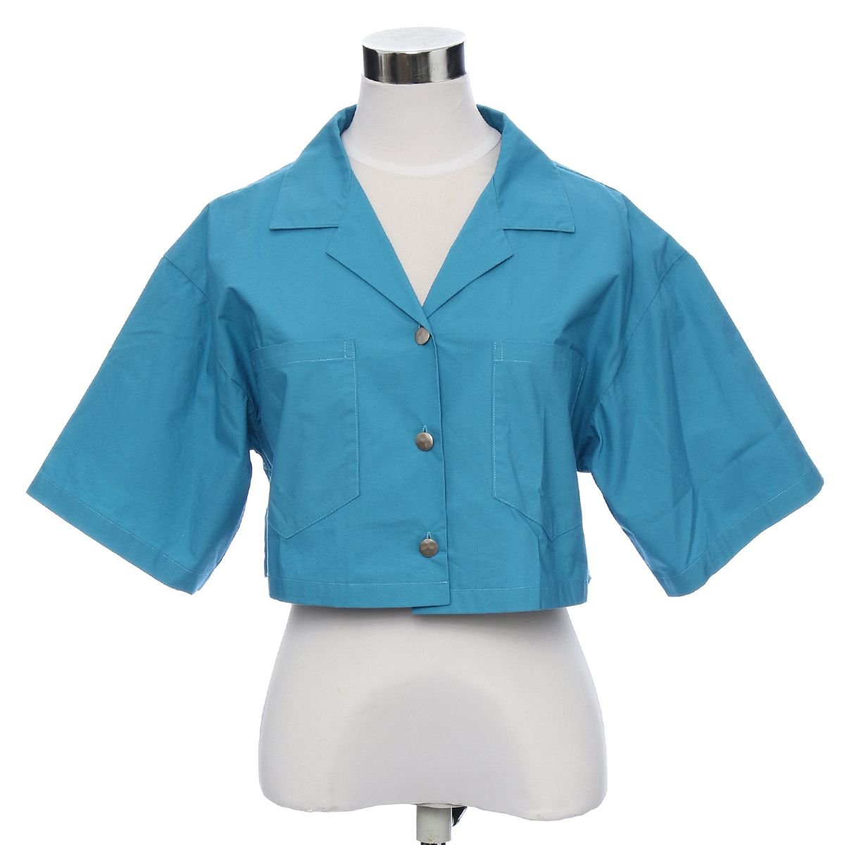 タイプライターのややハリのある上質な素材を使用した今季らしいクロップド丈のシャツは、丈感と身幅のサイズ感に拘り絶妙なシルエットに仕上げました。