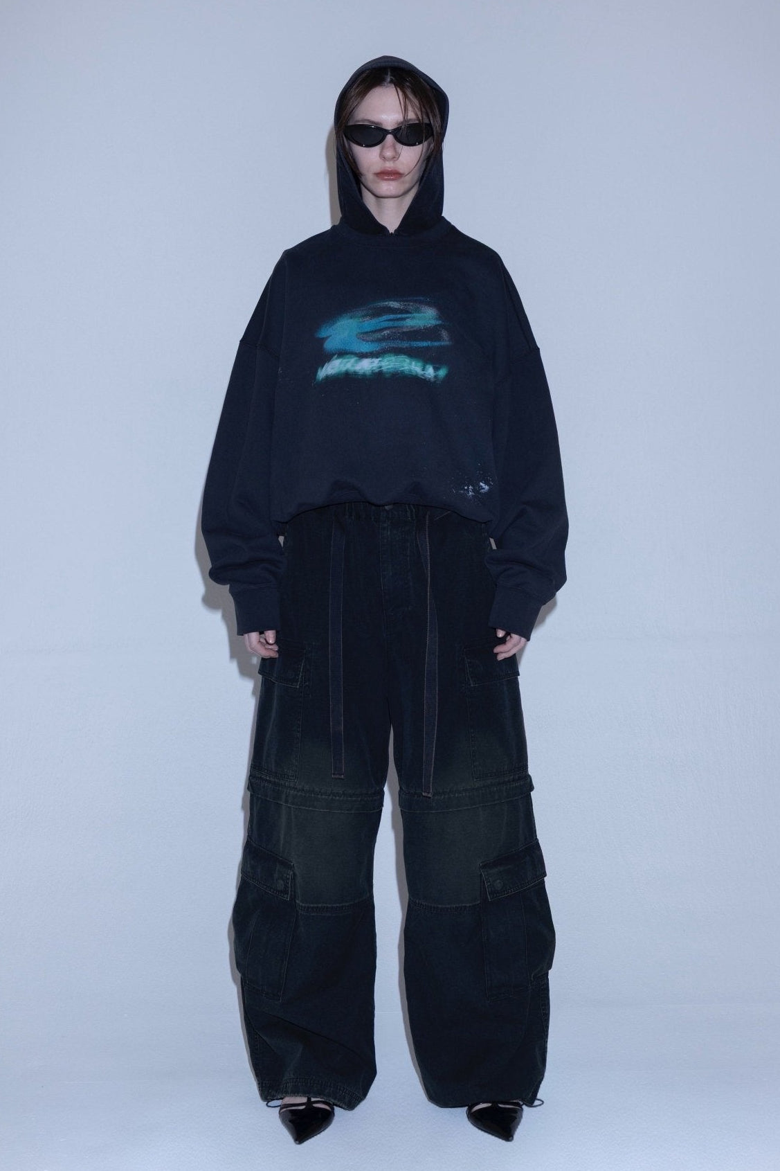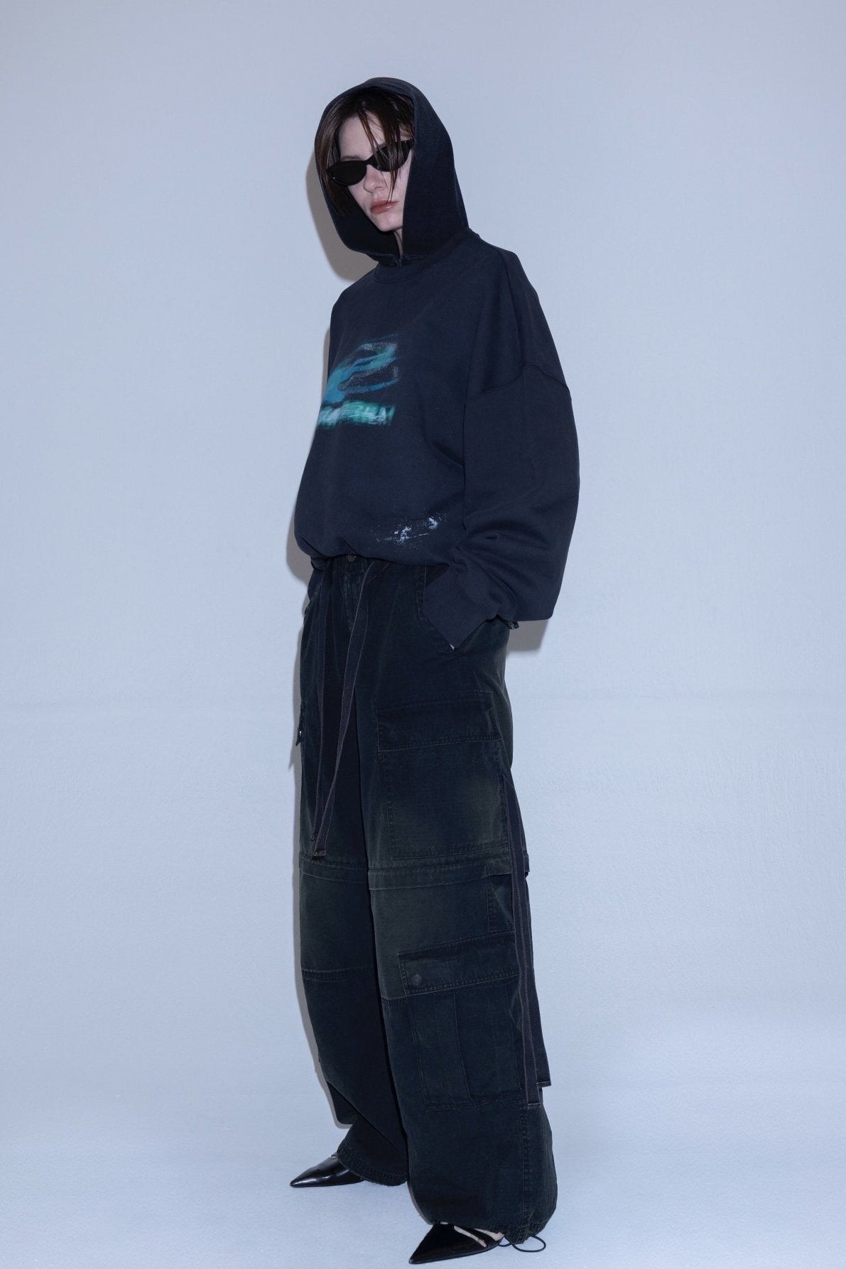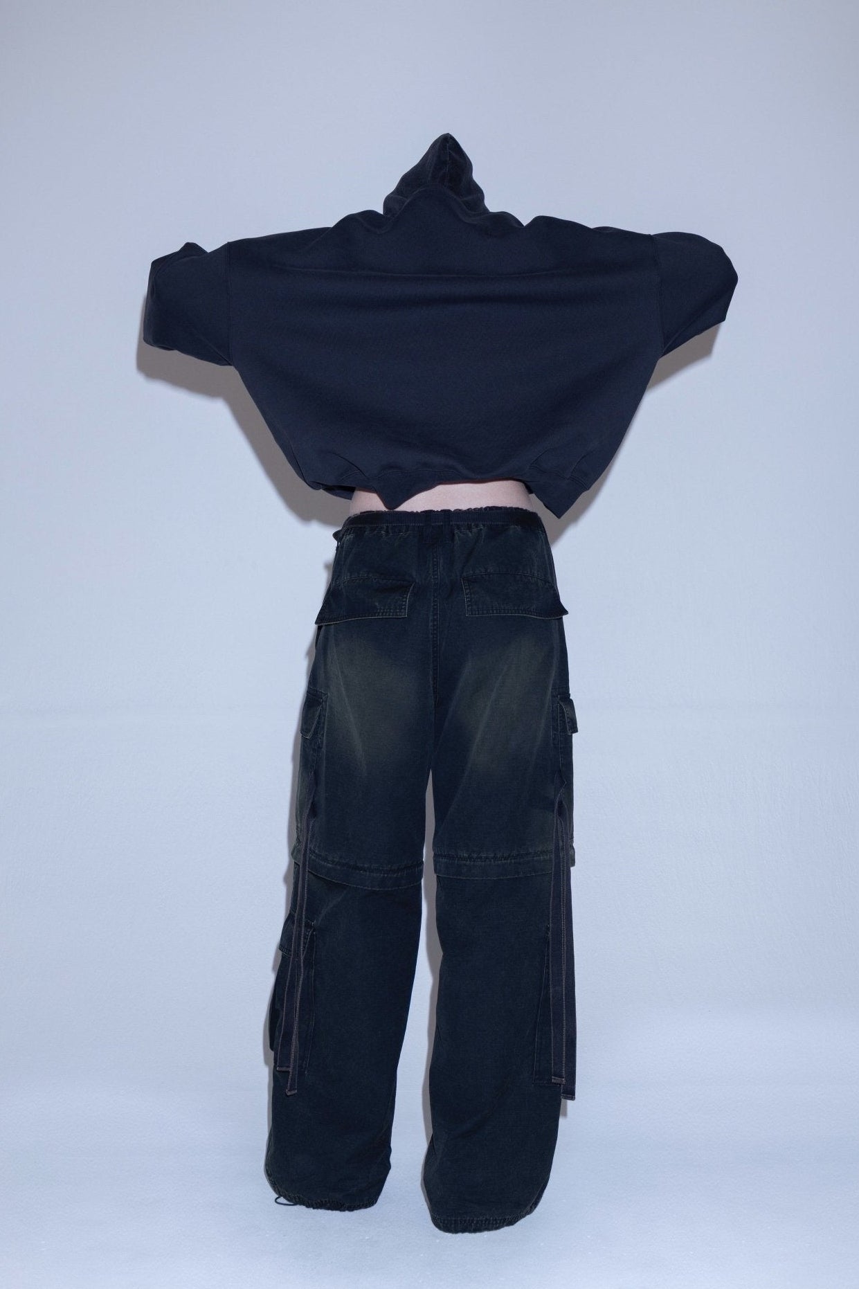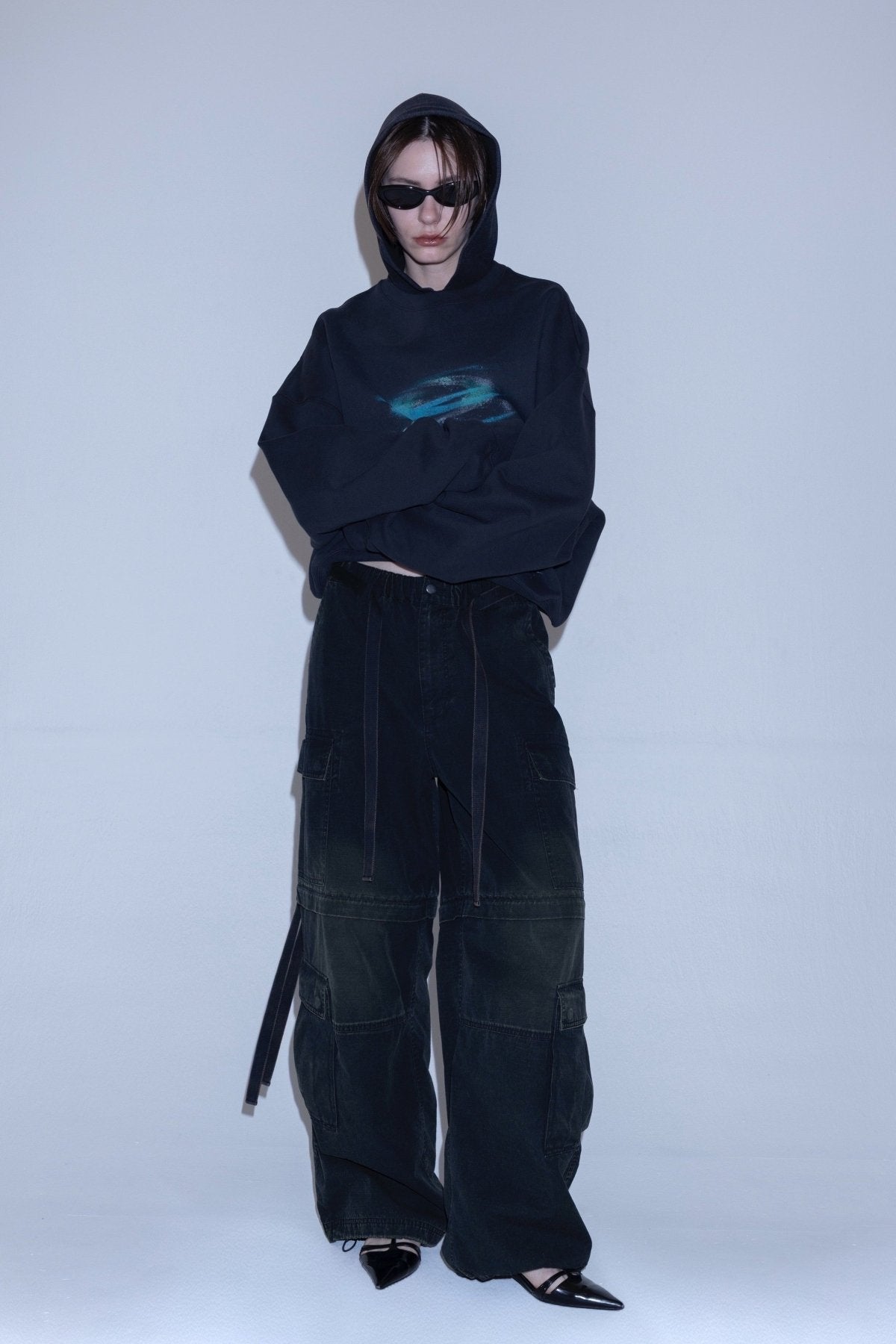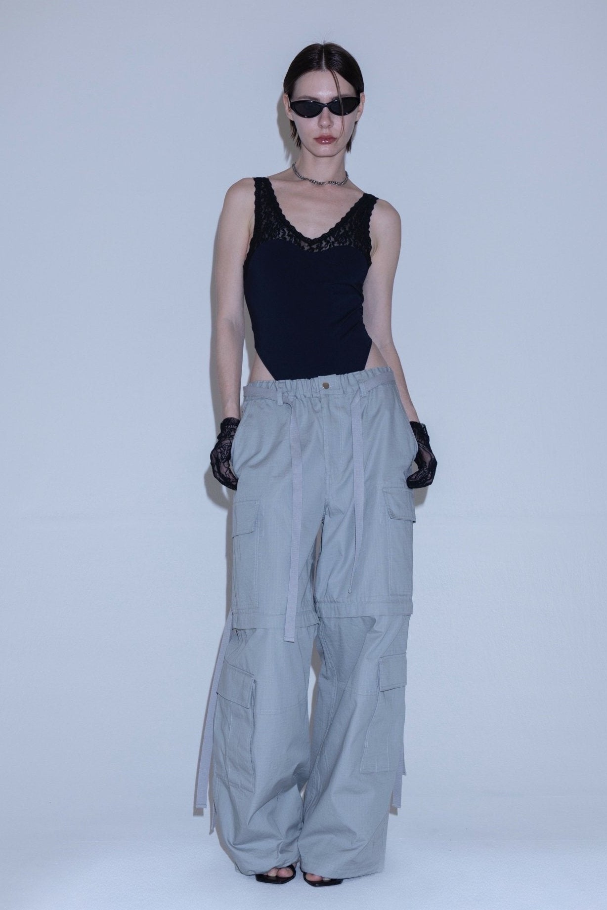 ボリュームのあるシルエットと多彩なギミックが特徴のユニセックスカーゴパンツ。