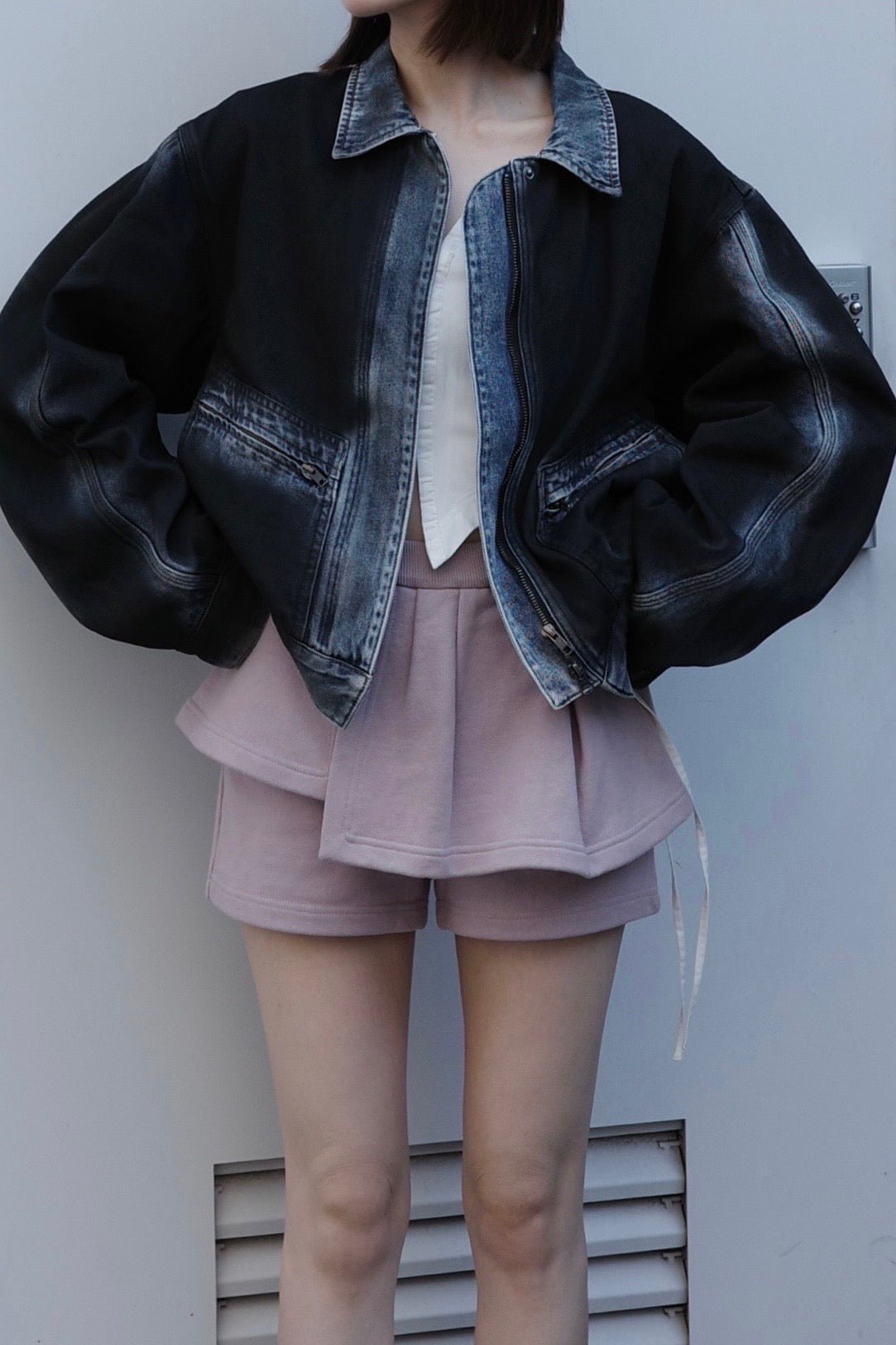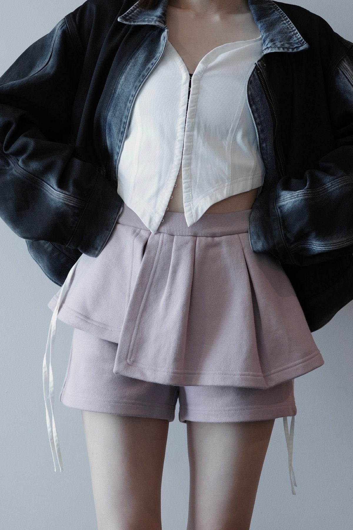 The relaxed feel of a sweatshirt is complemented by the peplum layering, creating a three-dimensional silhouette.