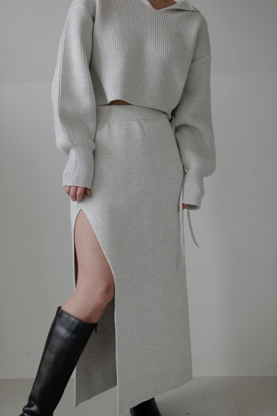 シーズンムードの高いニットスカートはカジュアルになりすぎない様に総針編みにし、 フラットな表面感でスッキリとした印象で着用していただけます。
