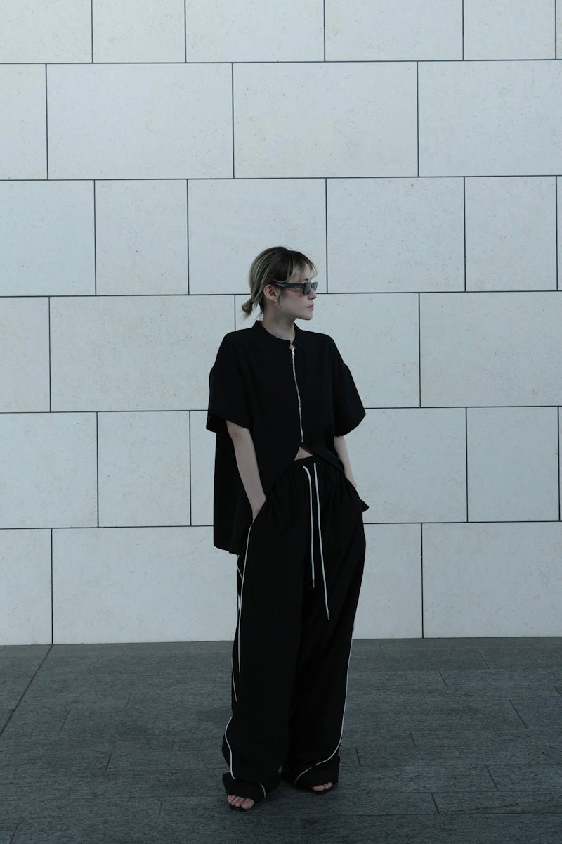 サイドと裾にあしらったパイピングがアクセントになったイージーパンツ。