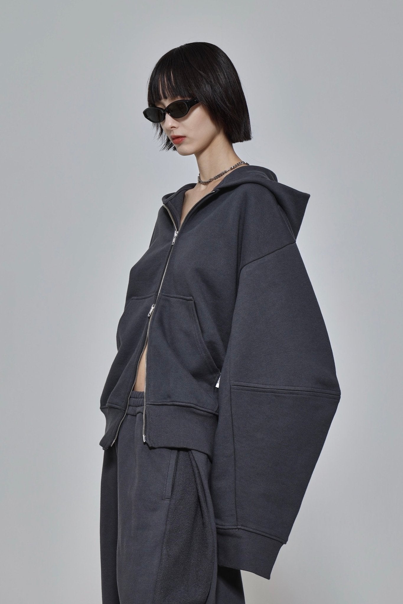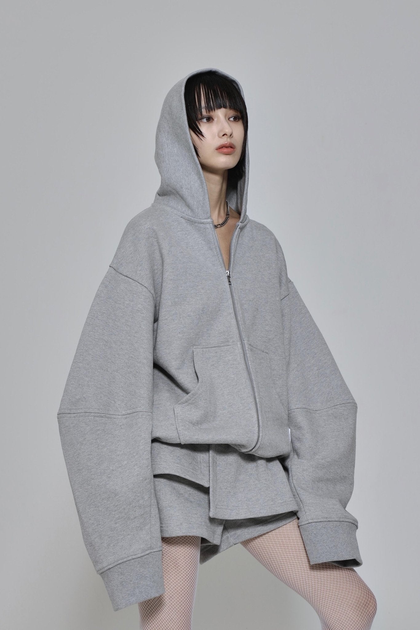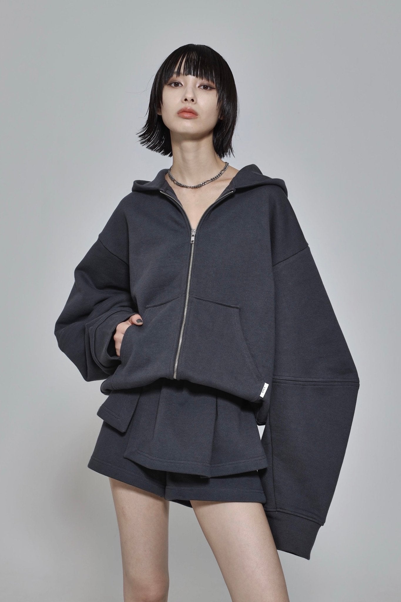 フロントの逆開ファスナーで、様々なフォルムでの魅せ方が可能。