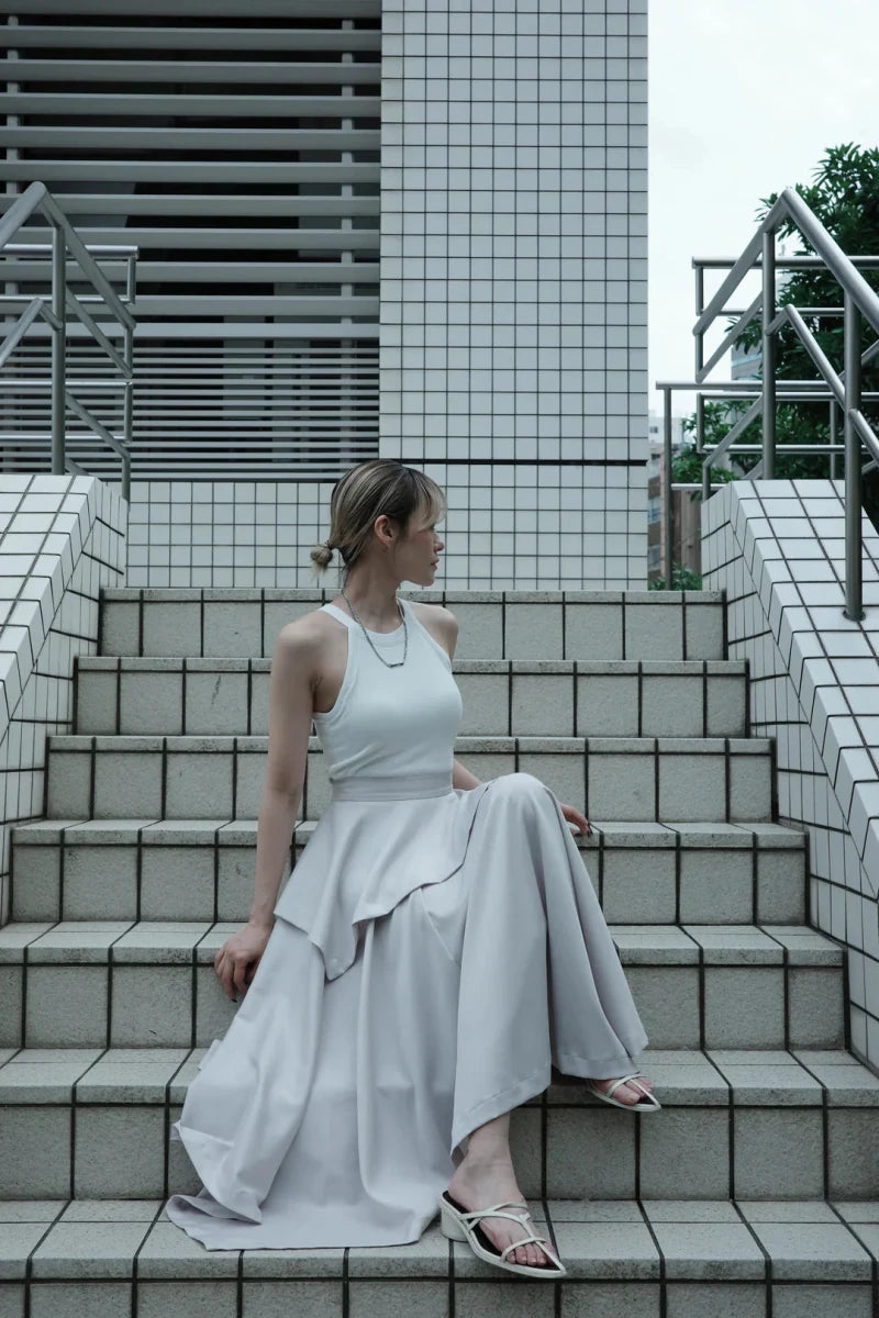 2段に重なるヘムデザインが歩くたびに様々な表情を魅せてくれ、どの方位からも美しいフォルムを映し出します。