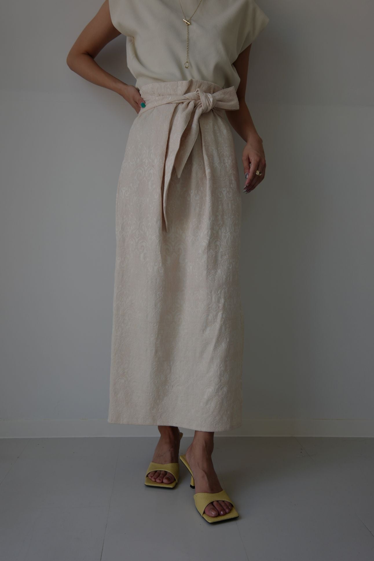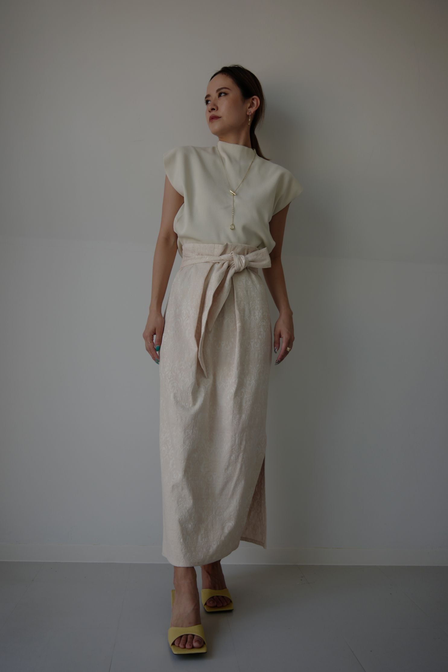 体のラインを拾い過ぎないIラインのシルエットで縦のラインを強調。コンパクトなトップス合わせがオススメです。