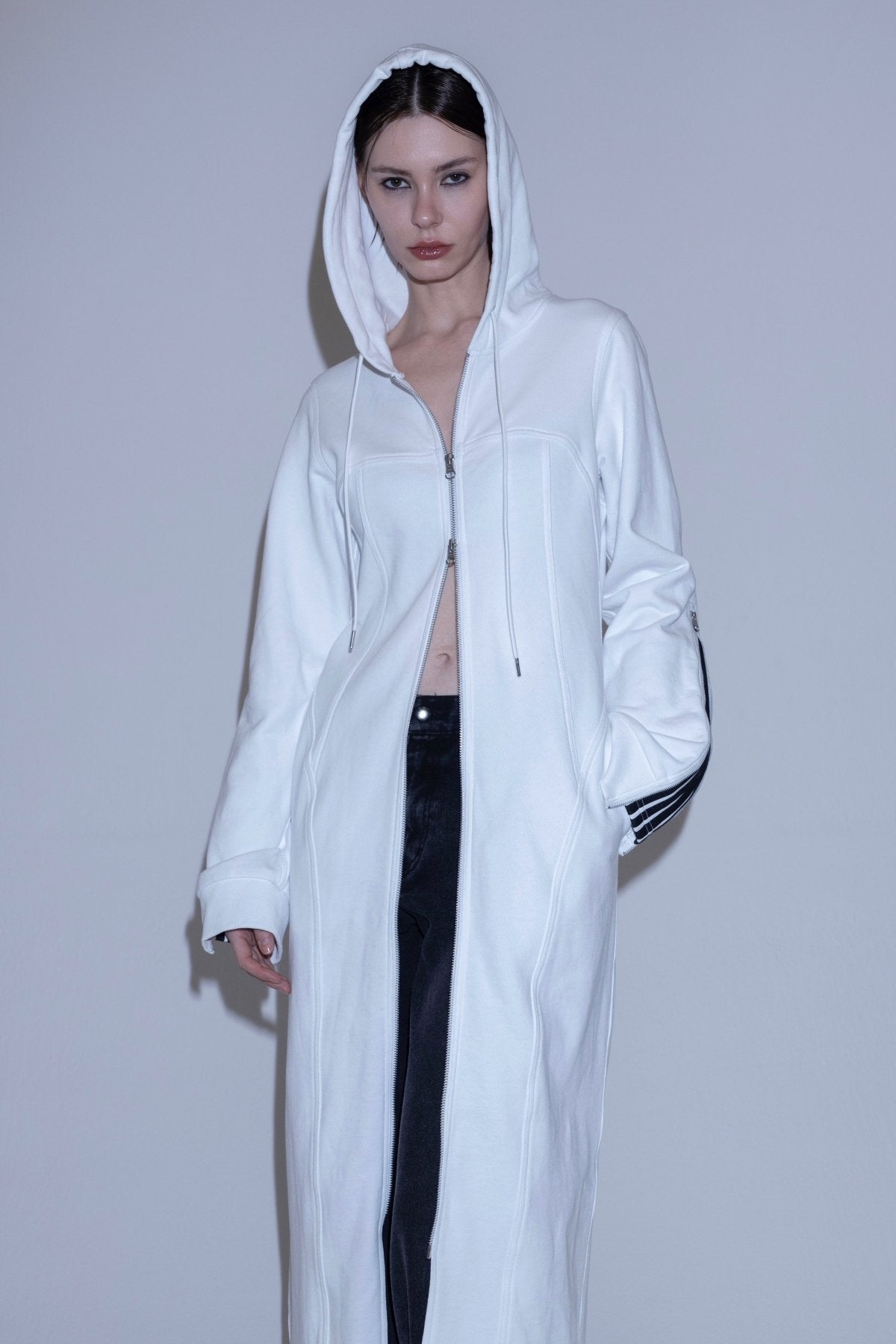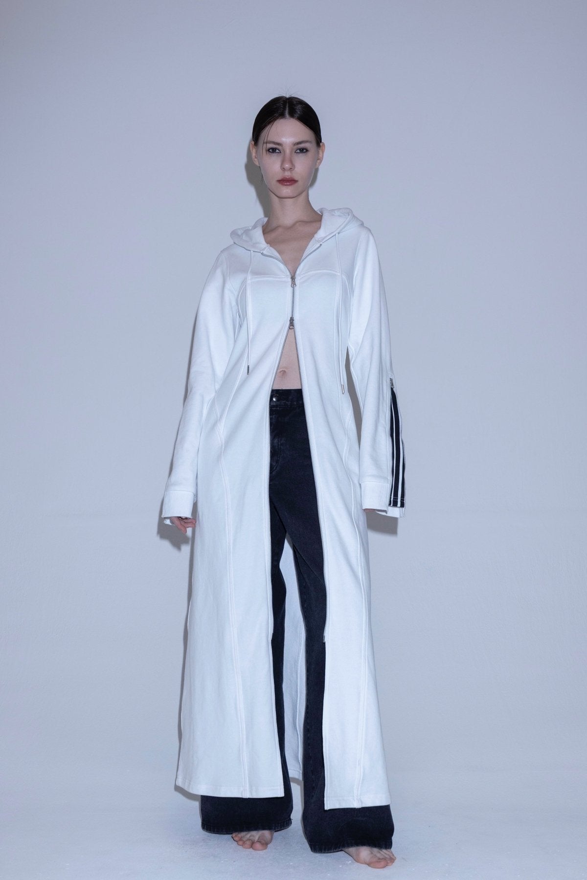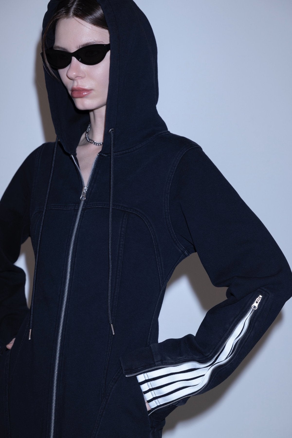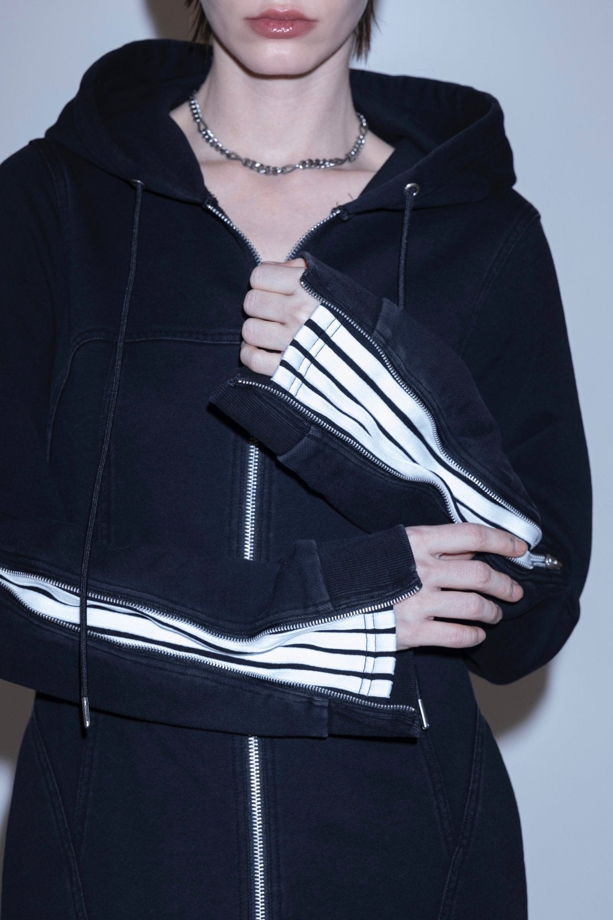 ・逆開ファスナー仕様で、ボトムとのレイヤードなど幅広いスタイリングが楽しめるデザイン
