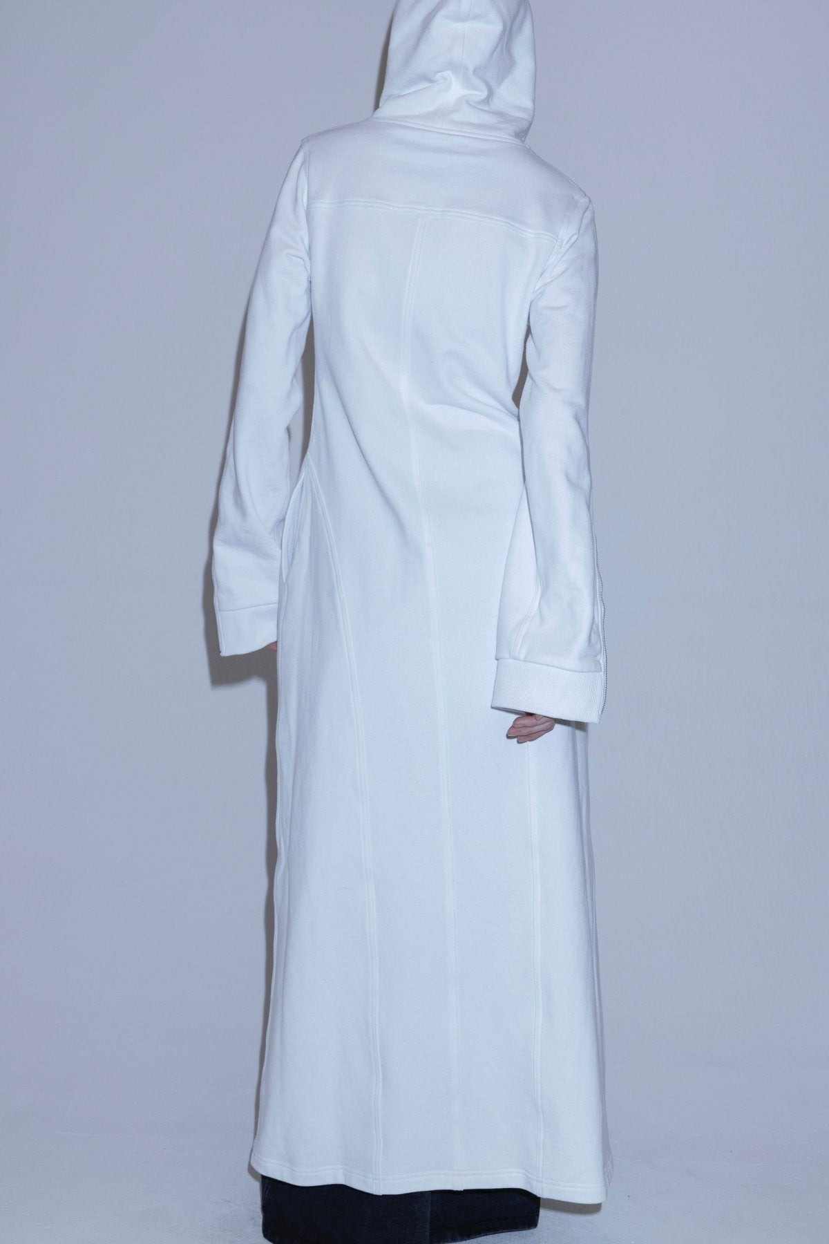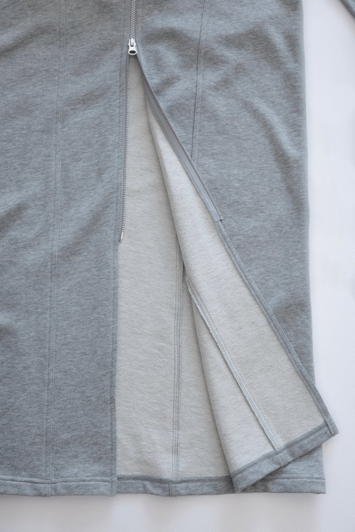 体のラインを拾いすぎず、ウエストのくびれを美しく引き立てるスウェットドレス。