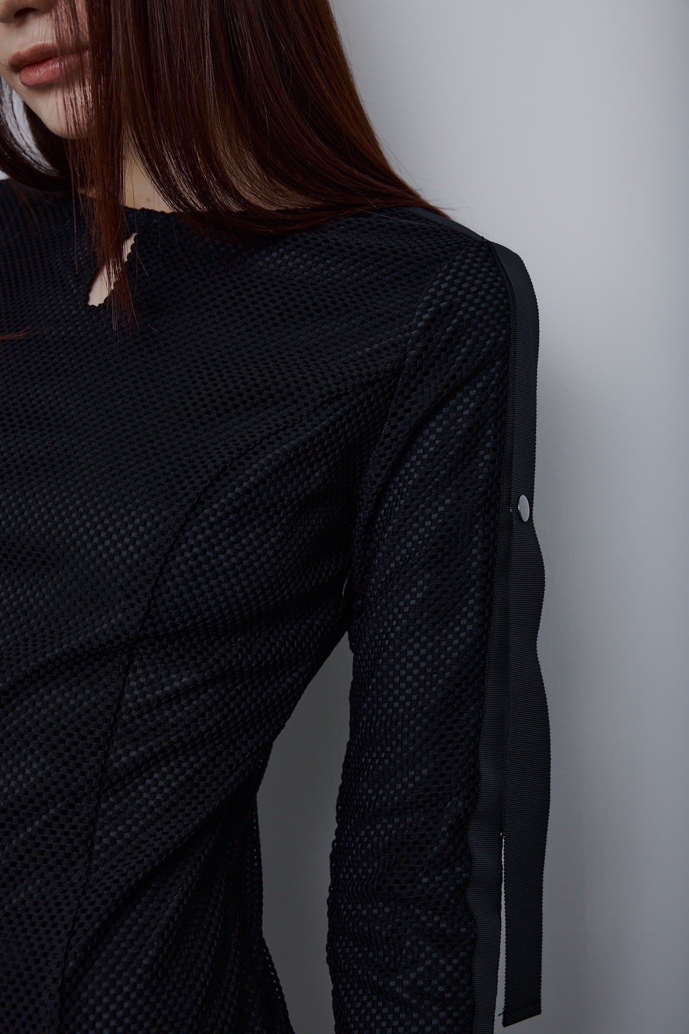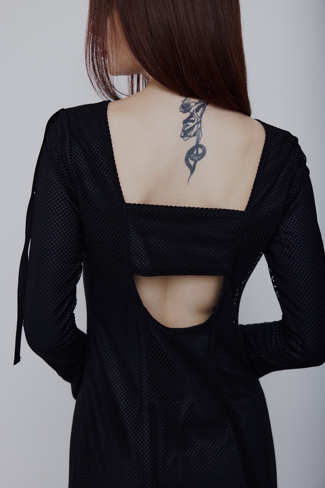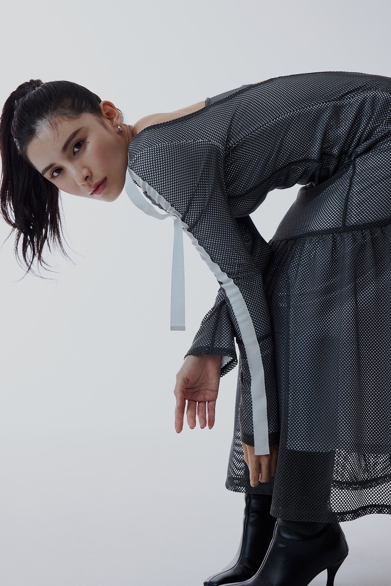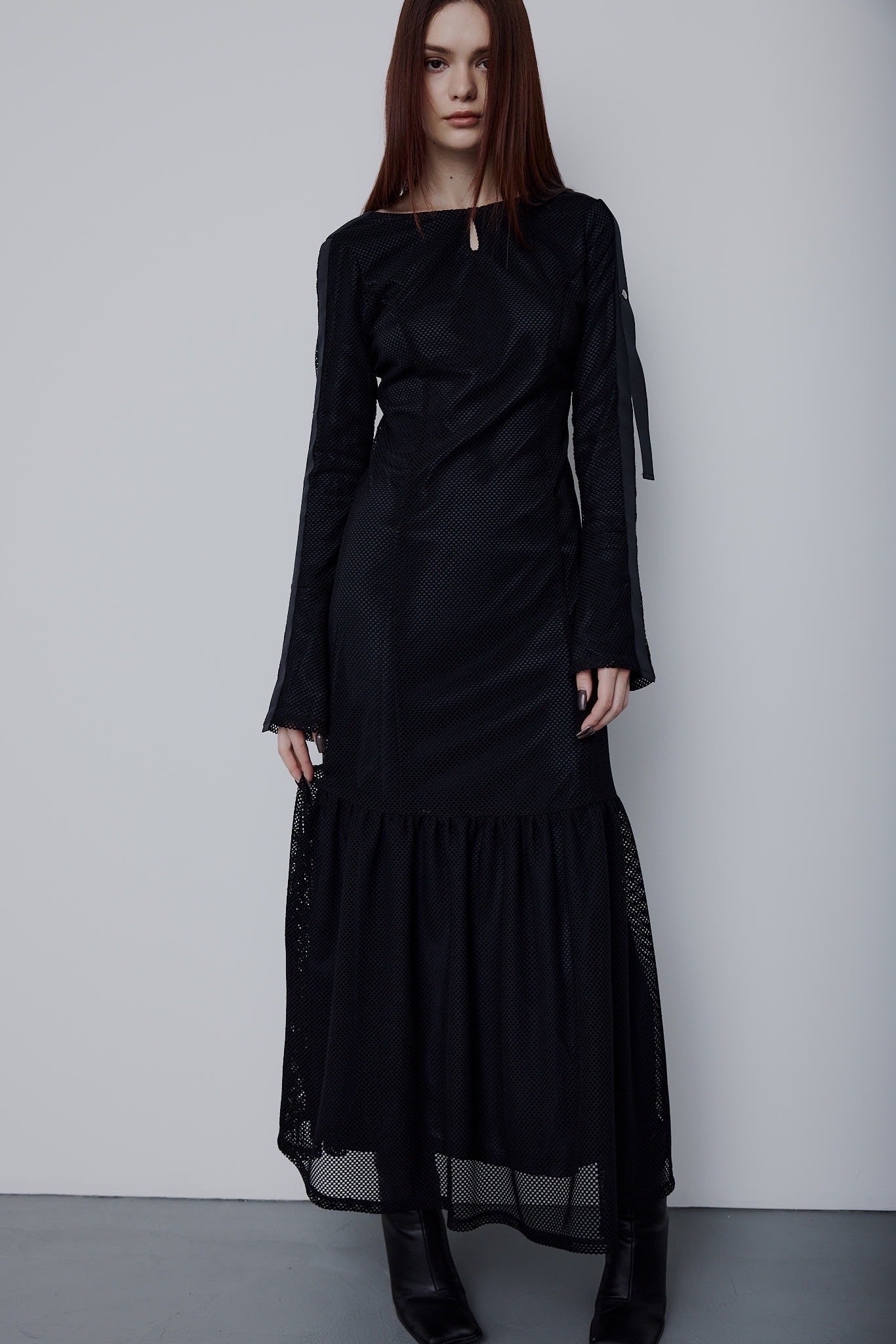 エレガントなボディラインを描き出すシルエットに、スポーティなメッシュ素材を掛け合わせた新感覚ドレス。